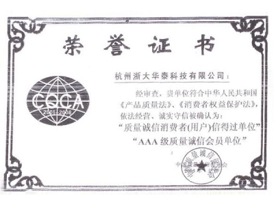 重質(zhì)量守誠(chéng)信榮譽(yù)證書(shū)